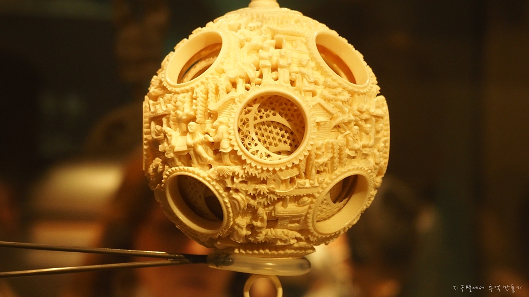상아로 만든 커다란 입체 구슬인데 구슬안에 또 구슬을 조각하여 16겹으로 만들어 졌으며 모두 움직일 수 있다고 합니다.