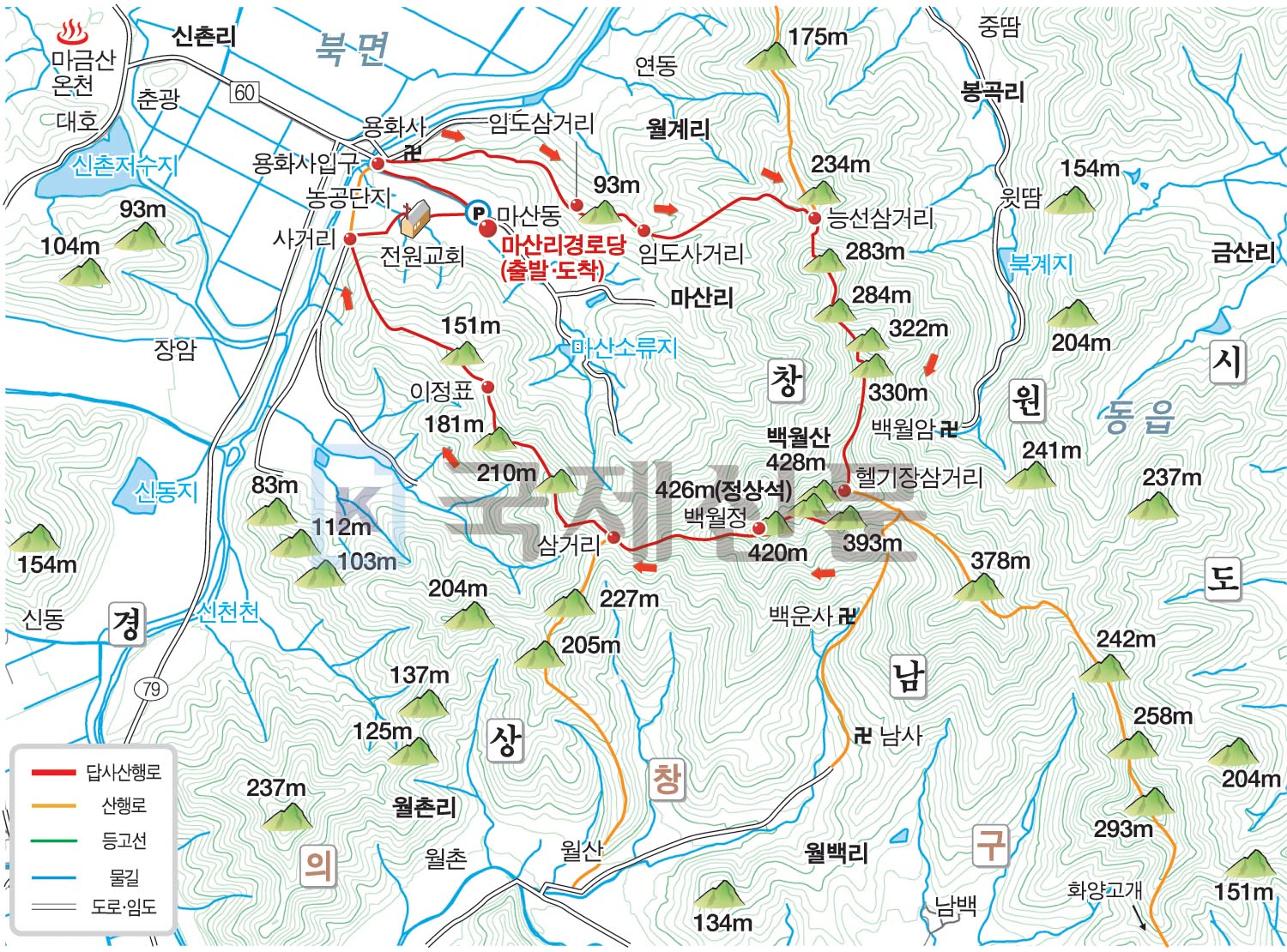 산행 코스 : 마산마을 공용 주차장 - 용화사 - 백월산 - 백월정 - 주차장(원점회귀)