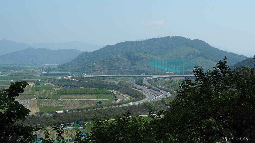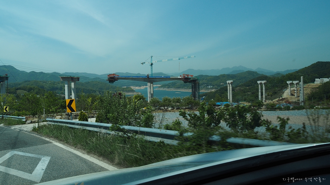 합천호가 내려다 보이고 고속도로 공사는 한창 진행 중이네요.