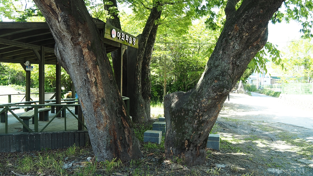 300년 묵은 느티나무 고목들이 있고 그 곁에 아이들의 야외 학습장이 있네요.