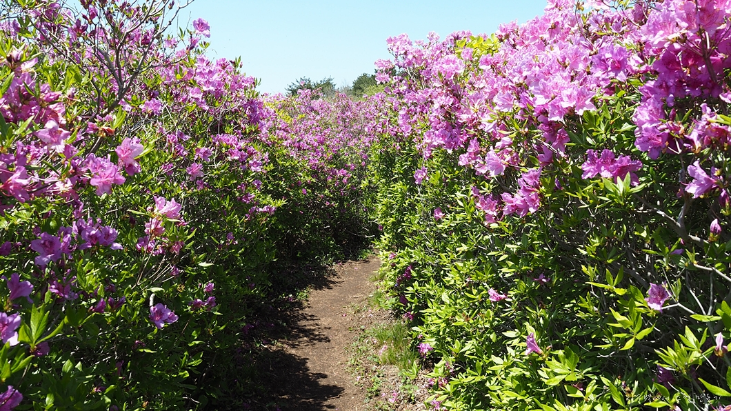 키가 높은 철쭉 꽃길이 이어지네요.
