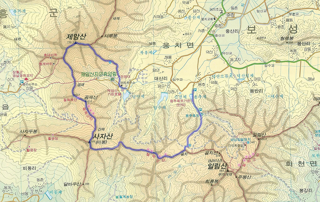 사자산~제암산 등산지도