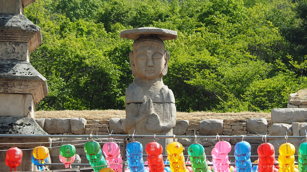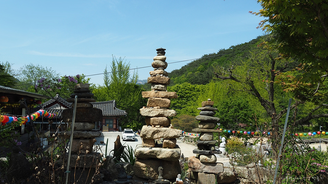 입상이 보이는 절 입구에 서서 크게 한번 더 둘러보고요.