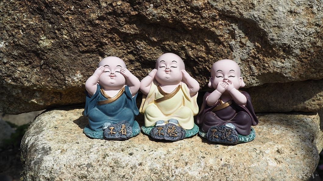 非禮勿視, 非禮勿聽, 非禮勿言, 非禮勿動(예가 아닌 것은 보지도 말고, 듣지도 말고, 말하지도 말고, 행하지도 말라.)라 하셨는데, 이걸 일본넘들이 원숭이 세 마리로 조각상을 만들어 히트를 치는 바람에 공자와 별 관계가 없는 절집에도 자주 차용되는 현상이 생기네요.