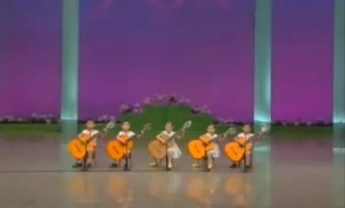 북한 유치원 어린이들의 놀랄만한 기타 연주 솜씨입니다.