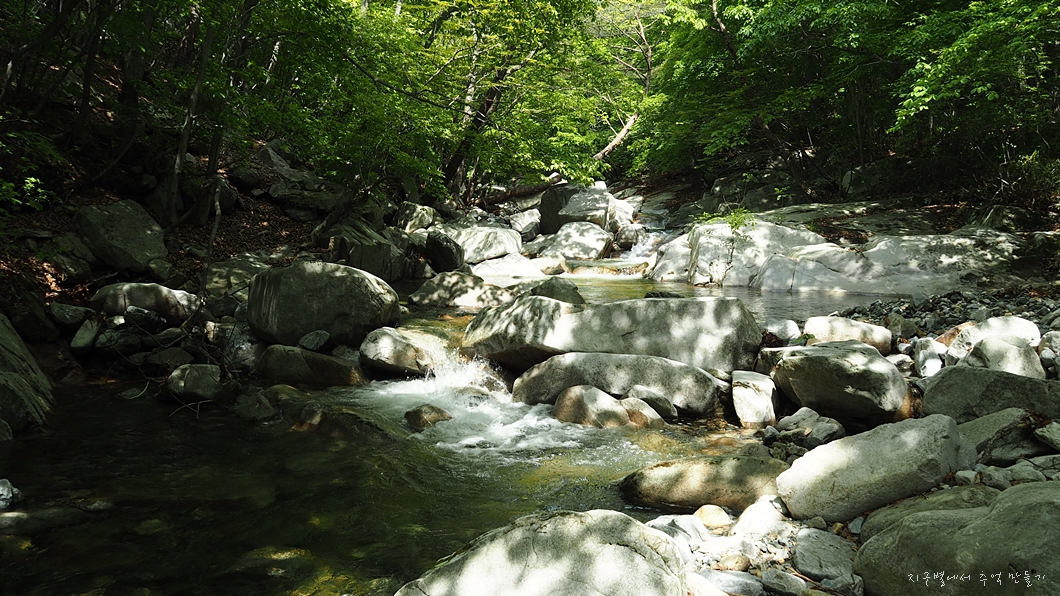 며칠 전 3일간이나 비가 내린 덕분에 수량도 많고 물도 깨끗하여 계곡이 아주 아름답니다.