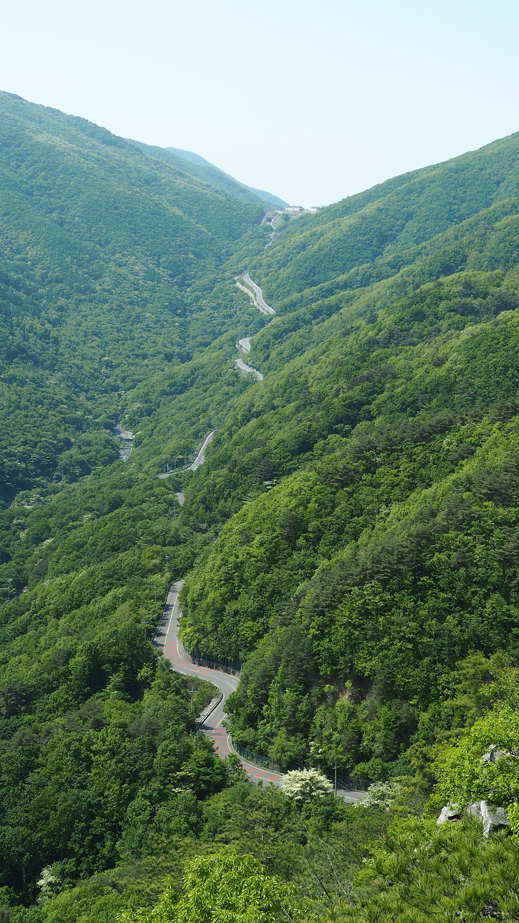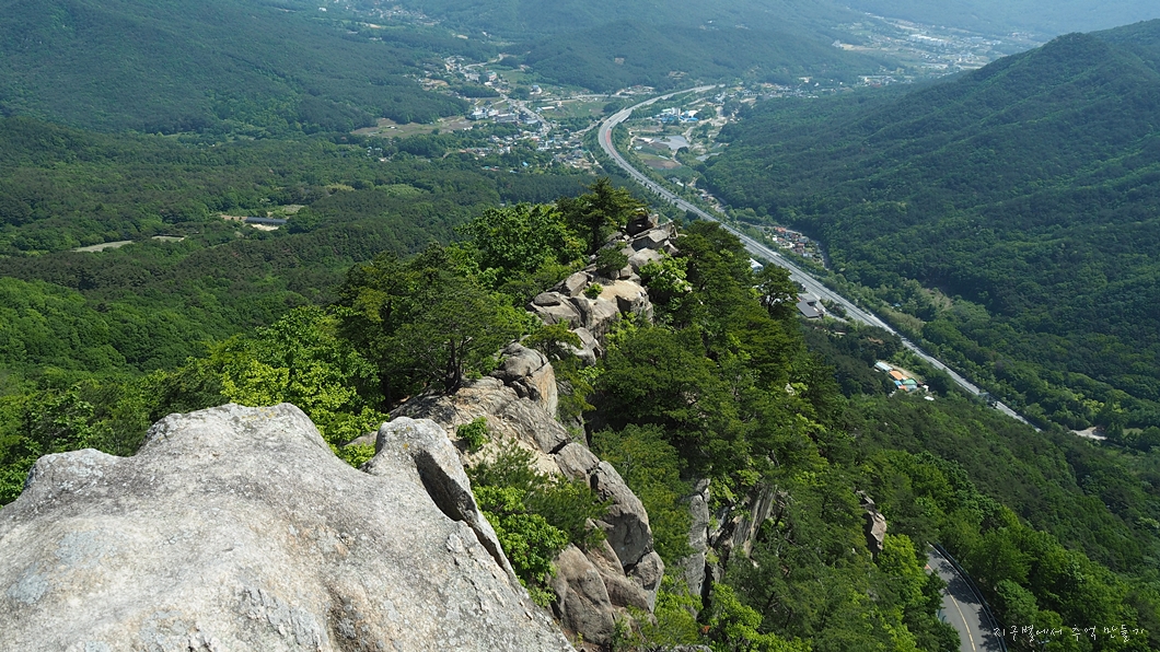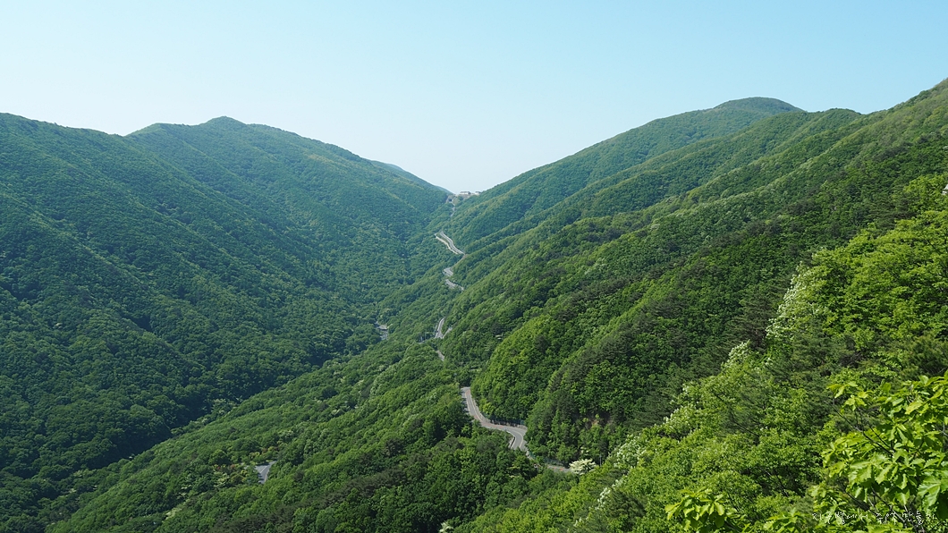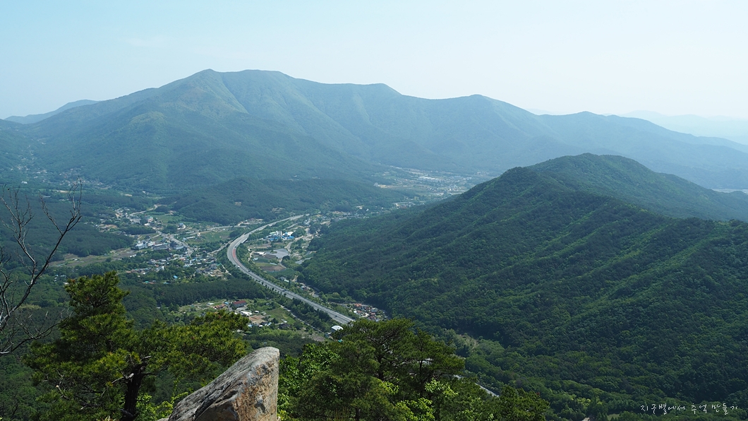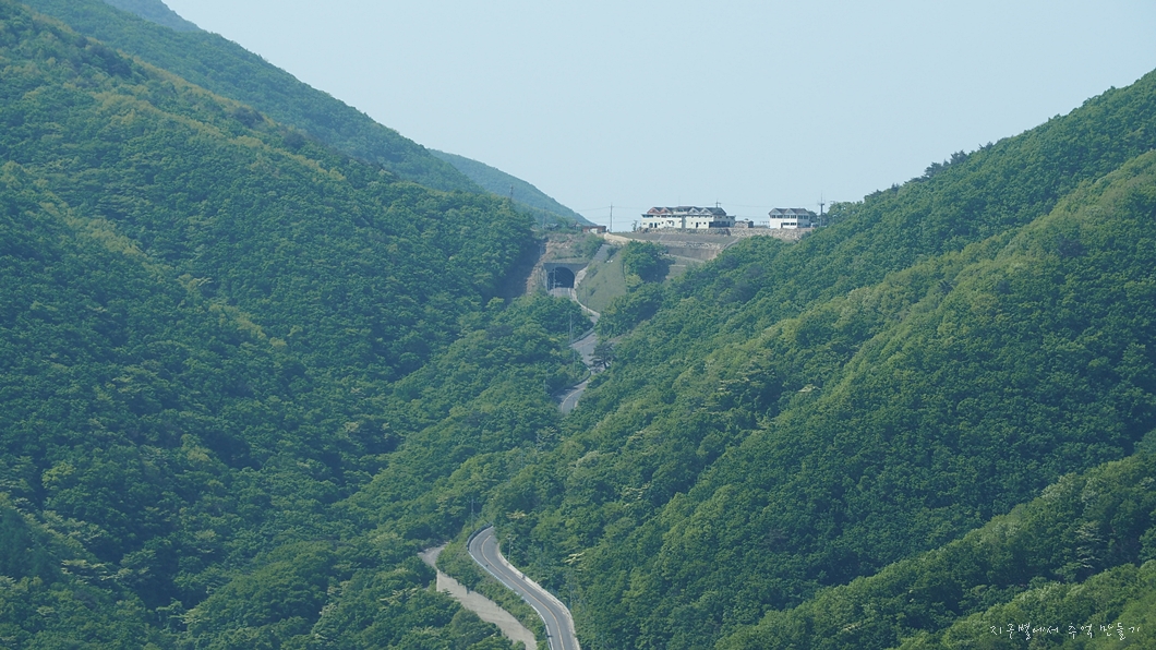 조망이 트이고 배내고개로 넘어가는 도로가 예쁘게 보여지네요.