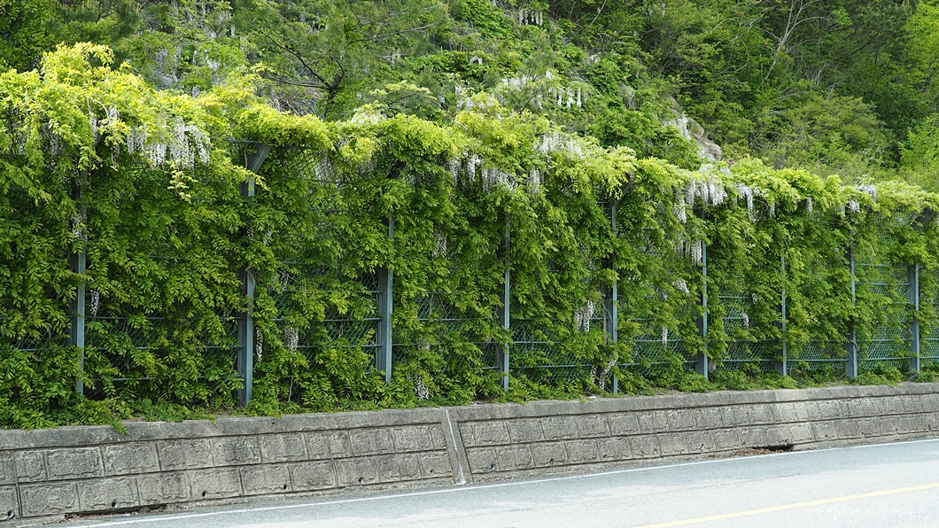 가지산 아래 낙석방지 철책에는 등나무 꽃이 한창입니다.