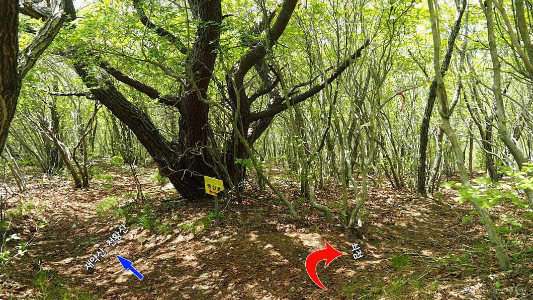 좌측으로 가면 능동산, 우측은 석남터널로 바로 내려가는 길.