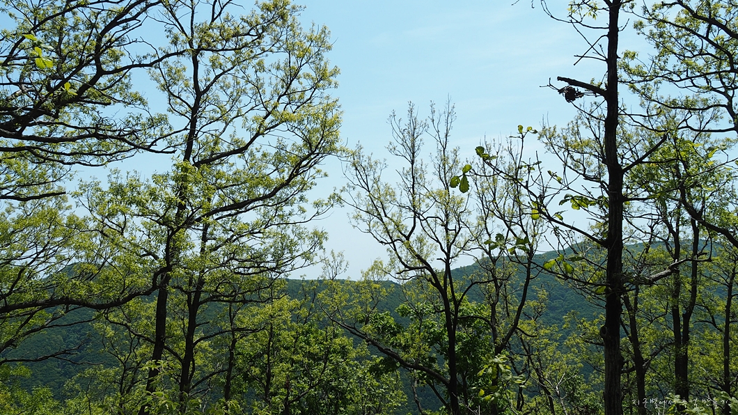 연두숲 뒤로 보이는 능동산.