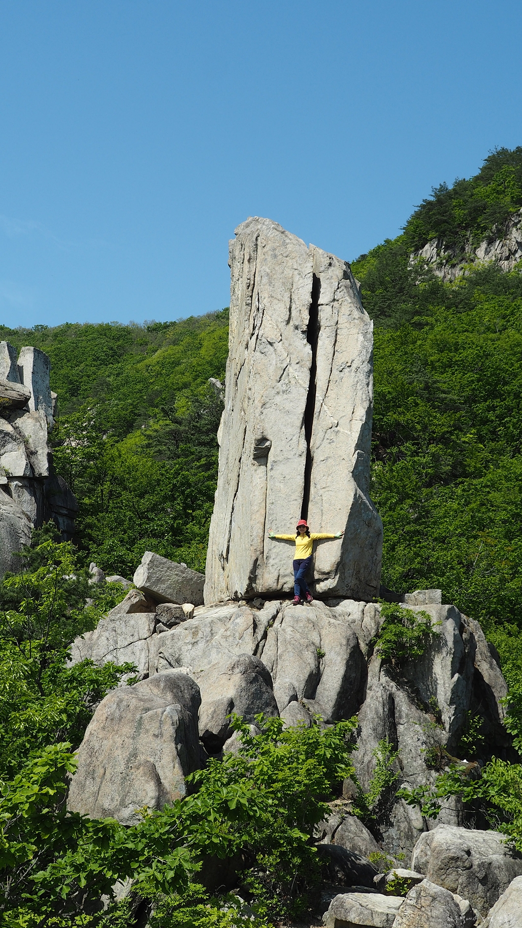 커다란 바위들은 그냥 찍으면 규모의 사실감이 사라지는데 누군가 서 있으면 크기가 가늠이 되어 훨씬 보기 낫지유.