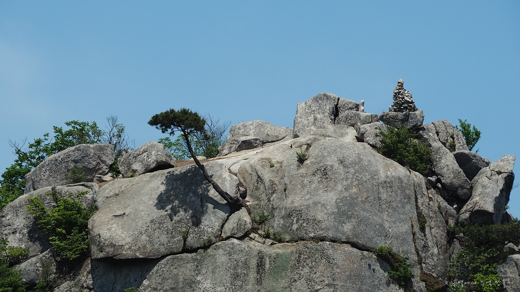 이전에 전국적으로 정상석 훼손이 되는 시기에 이곳 노적봉 정상석도 어떤 넘이 두 동강을 내고 조각을 찾을 수 없었다고 하는데 한반도형 예쁜 돌로 만들어 다시 세워 두었습니다.