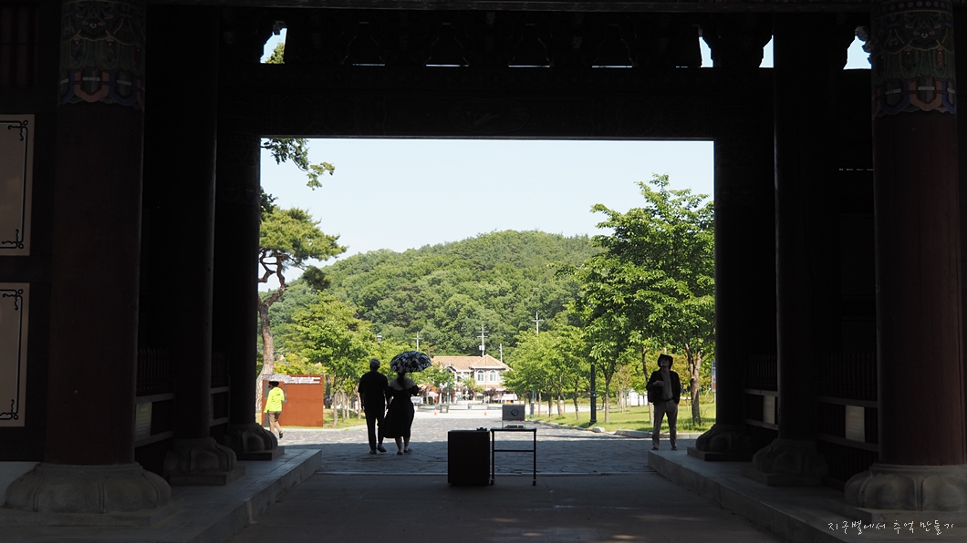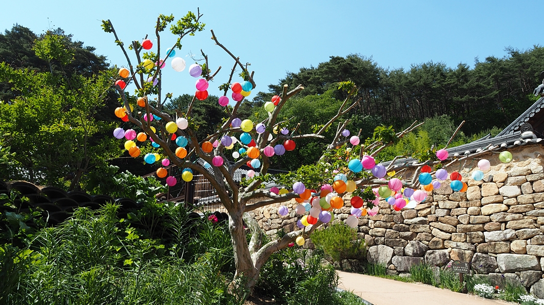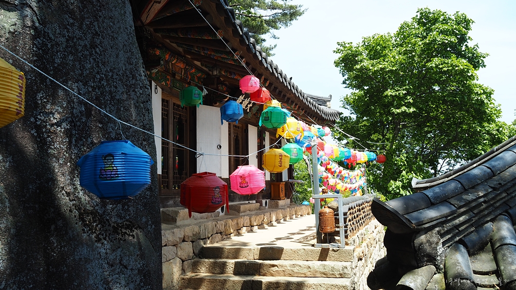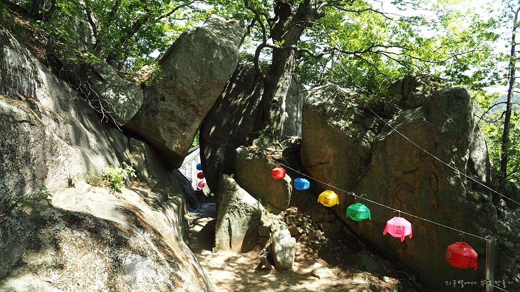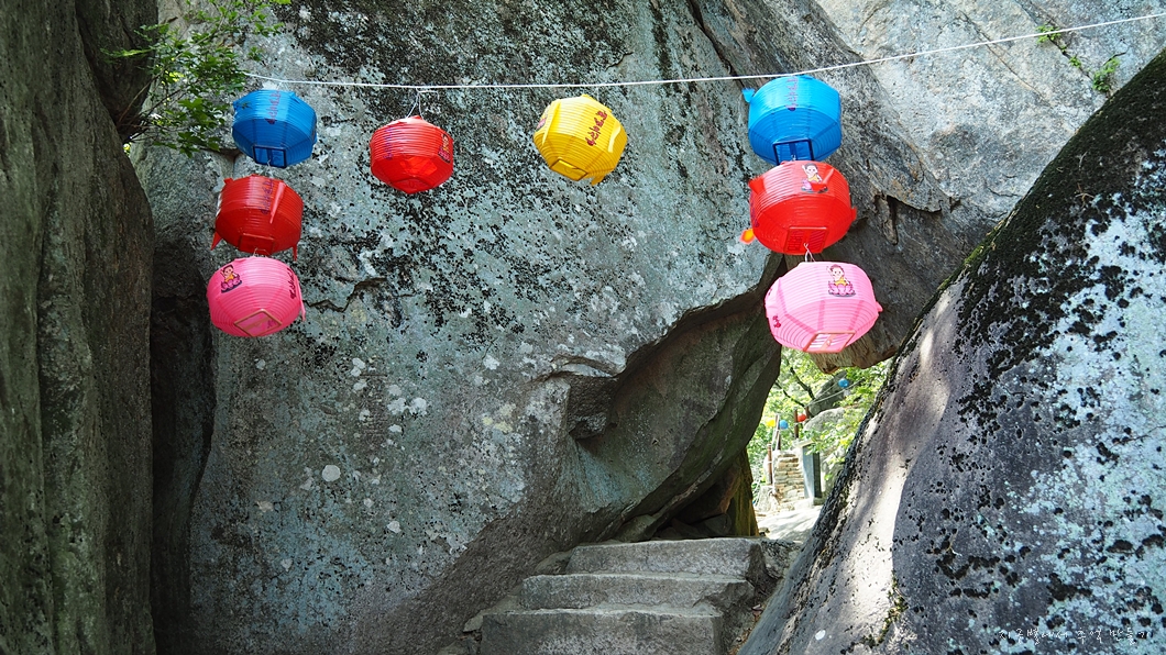 바람결에 흔들리는 연등을 지나 다시 석문을 통과하여 바깥으로 나옵니다.