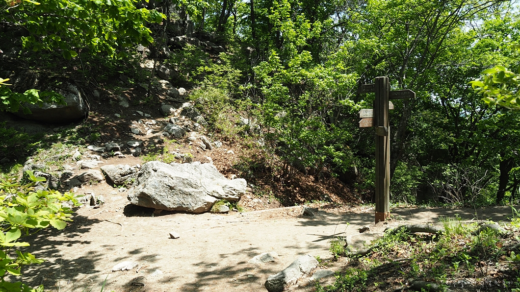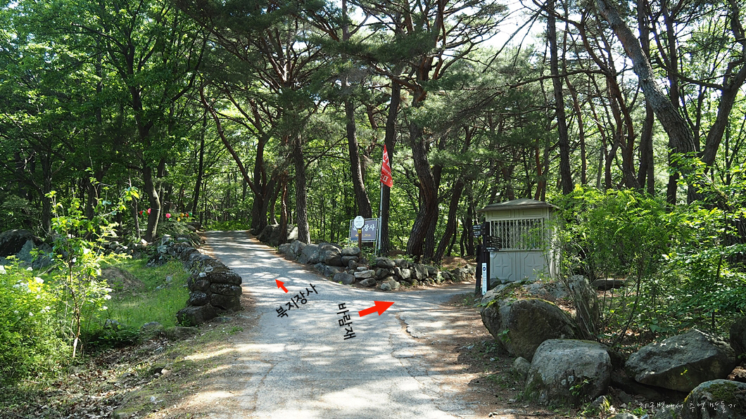 북지장사 방향 숲길을 따라 조금 걸어 들어가면 갈림길이 나옵니다.