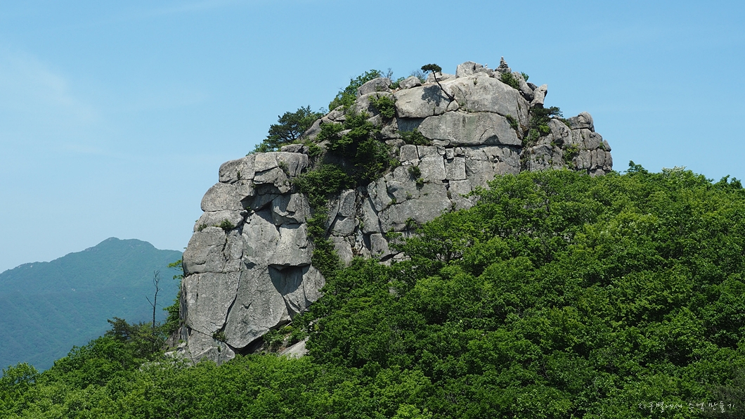 은해사로 이동하는 능선에서 바라본 갓바위.