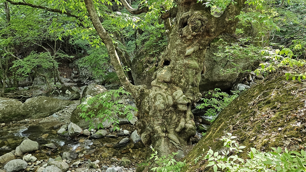 초암사 앞 개울 속의 이 나무는 언제 봐도 위용이 대단합니다.