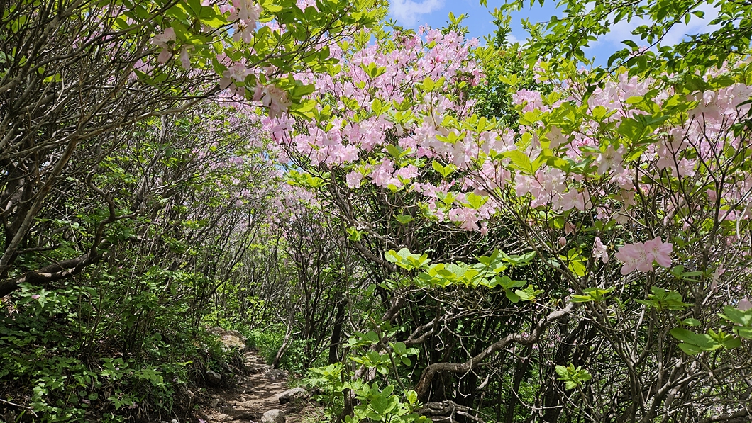능선길 곳곳에는 철쭉 터널이 이어집니다.