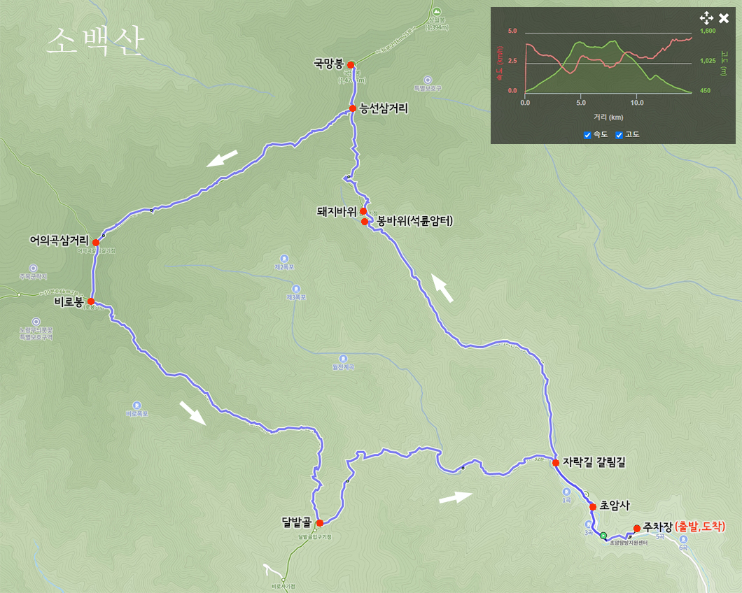 산행 코스 : 초암사 주차장 - 돼지바위 - 국망봉 - 비로봉 - 달밭골 - 초암사주차장(원점회귀)