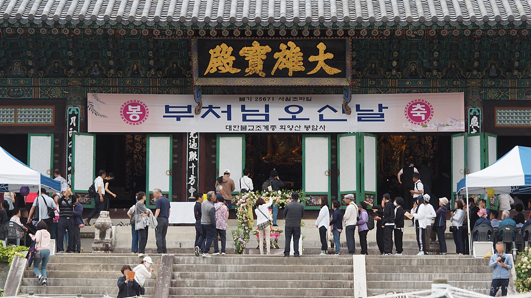 본당 앞에는 아기부처님 관불행사로 긴 줄이 이어져 있습니다.