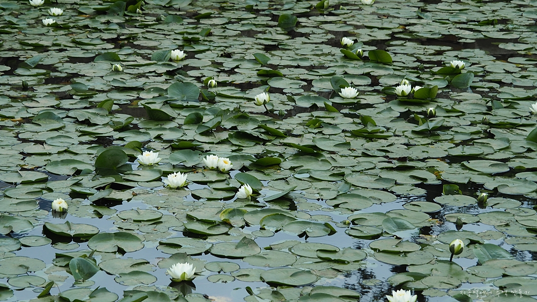하얀 수련이 수면 위로 동동 피어 있네요.