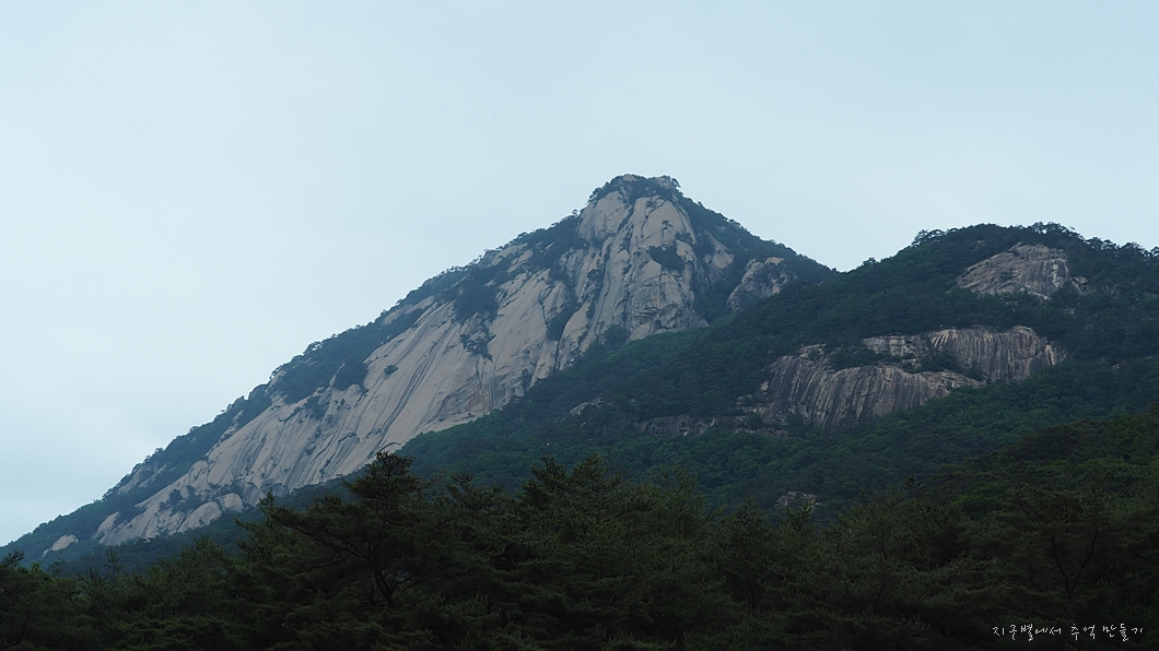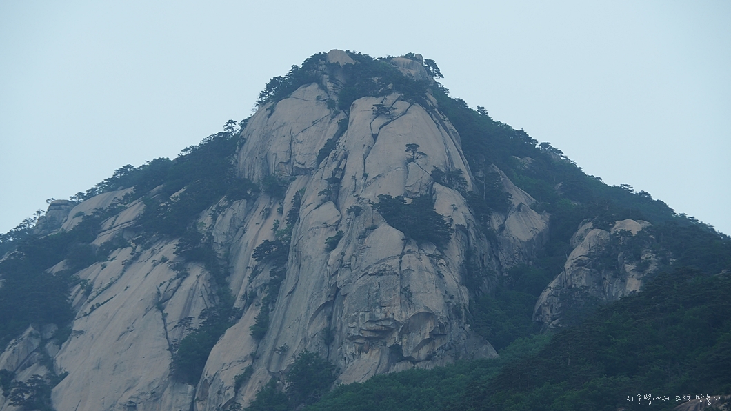 통바위로 되어 있는 산인데 오늘은 날씨가 흐려 햇살에 반짝이는 모습을 볼 수 없어 아쉽습니다.