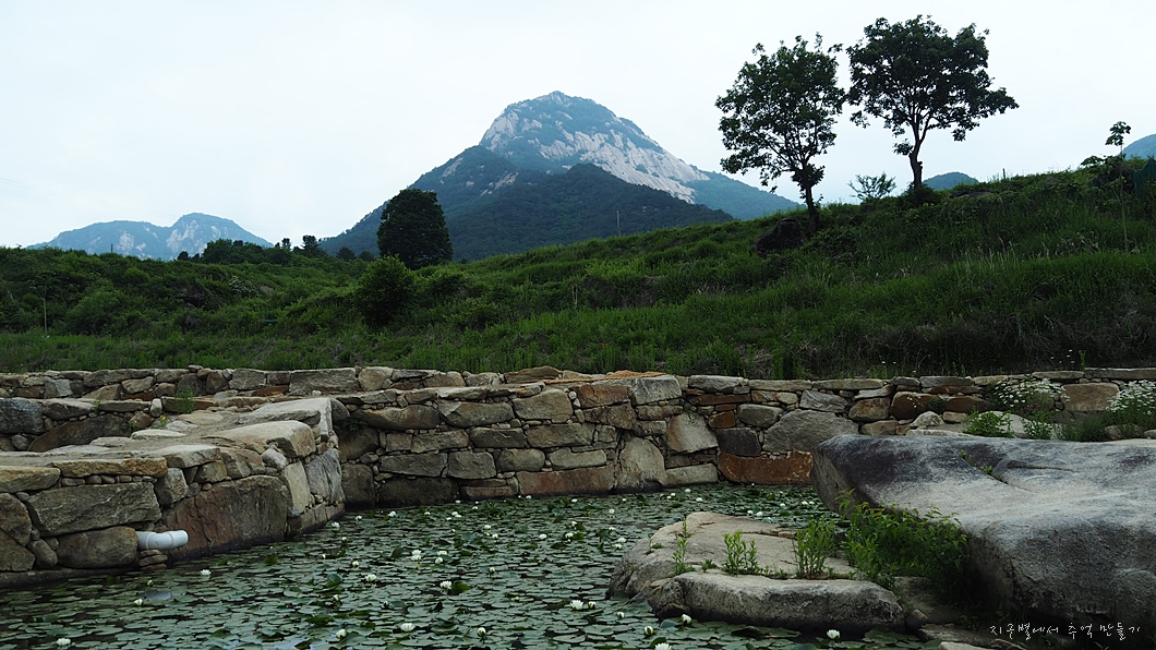 개울 건너편으로 연지를 만들어 운치 있게 도보길을 만들어 두었는데 연꽃도 이제 막 피기 시작 합니다.