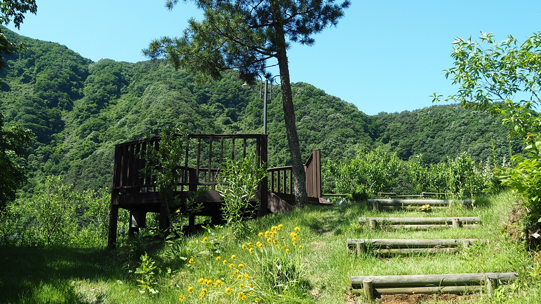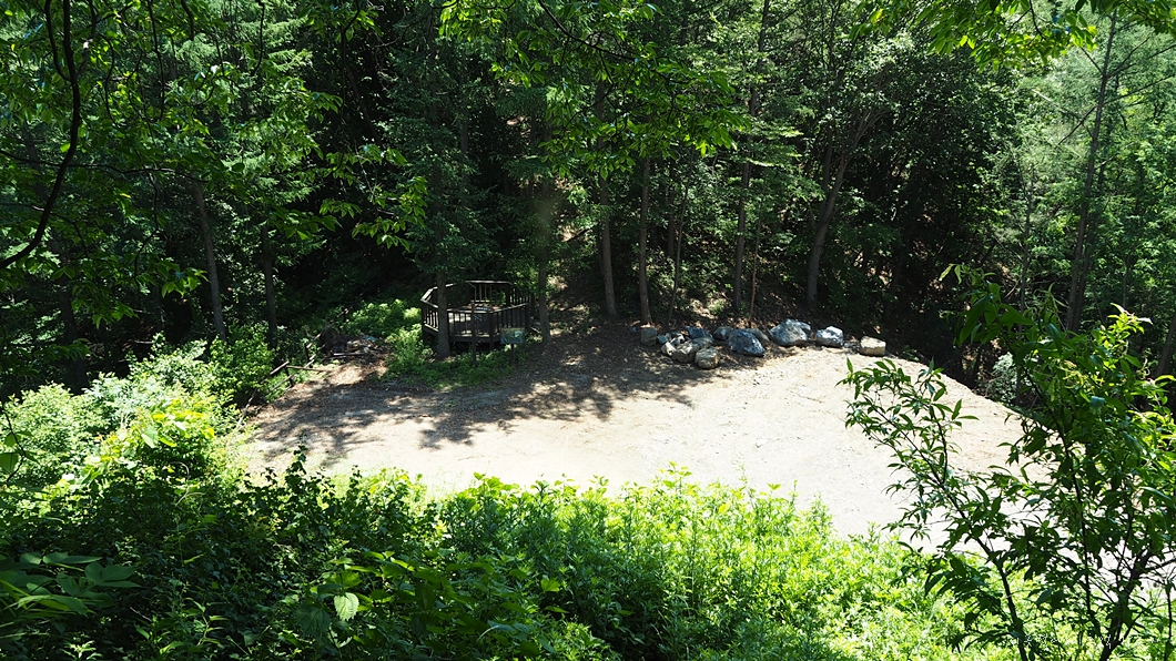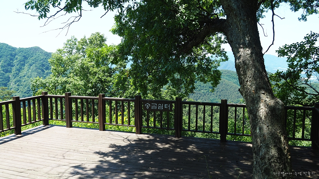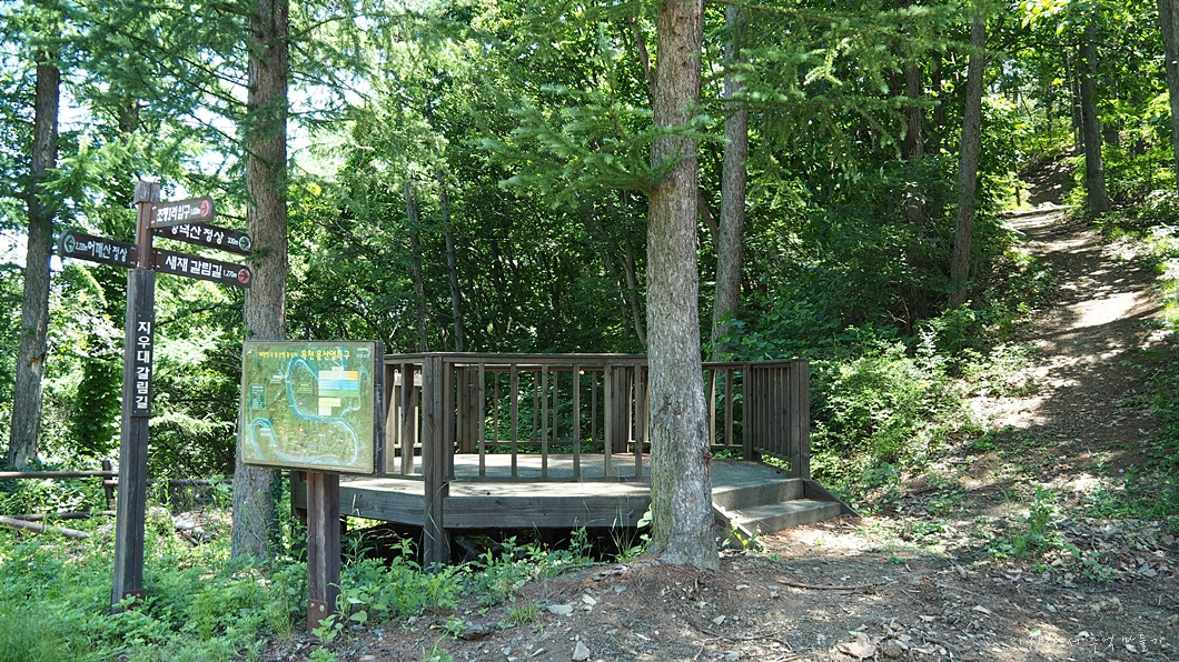 사방이 꽉 막힌 임도 옆에 지우대전망대라는 데크쉼터가 있습니다.