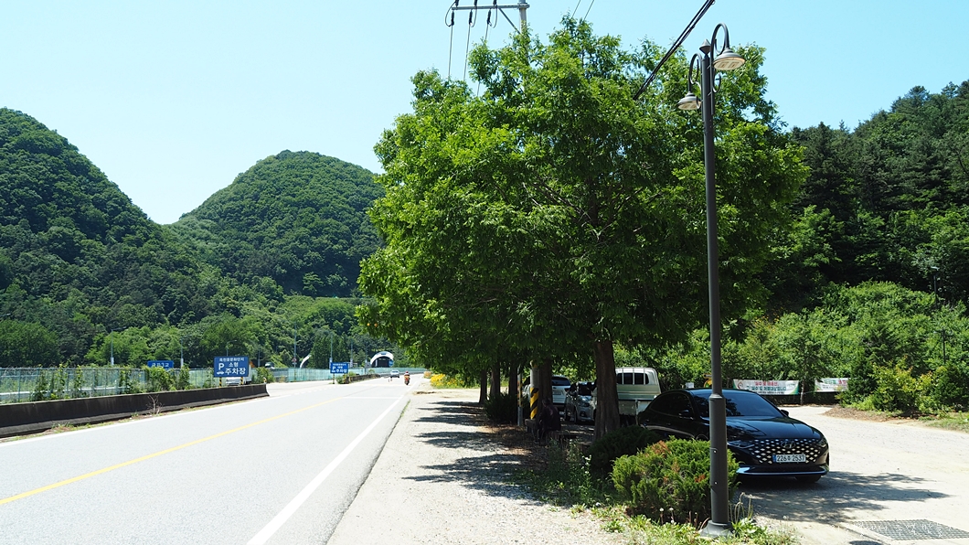 도로까지 하산하여 사진에 보이는 굴다리를 지나가지 말고 우측 도로를 따라 20분 정도 걸어가면 최초 들머리 주차장과 만나게 됩니다.