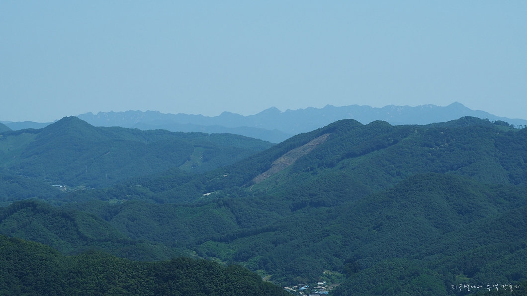 좌측 뒤편으로 멀리 영동의 백화산과 주행봉이 조망됩니다.