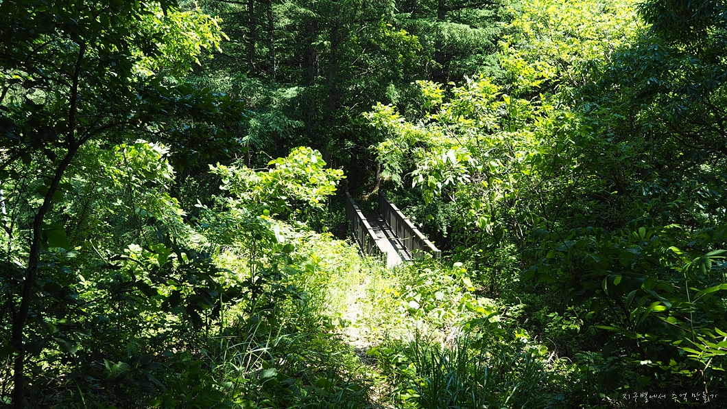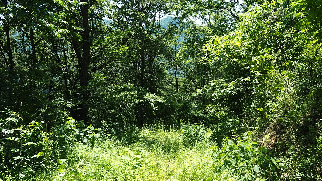 풀들이 가득 자란 묵은 임도를 따라 내려가는데 발에 엉키는 칡넝쿨이랑 풀들이 많습니다.