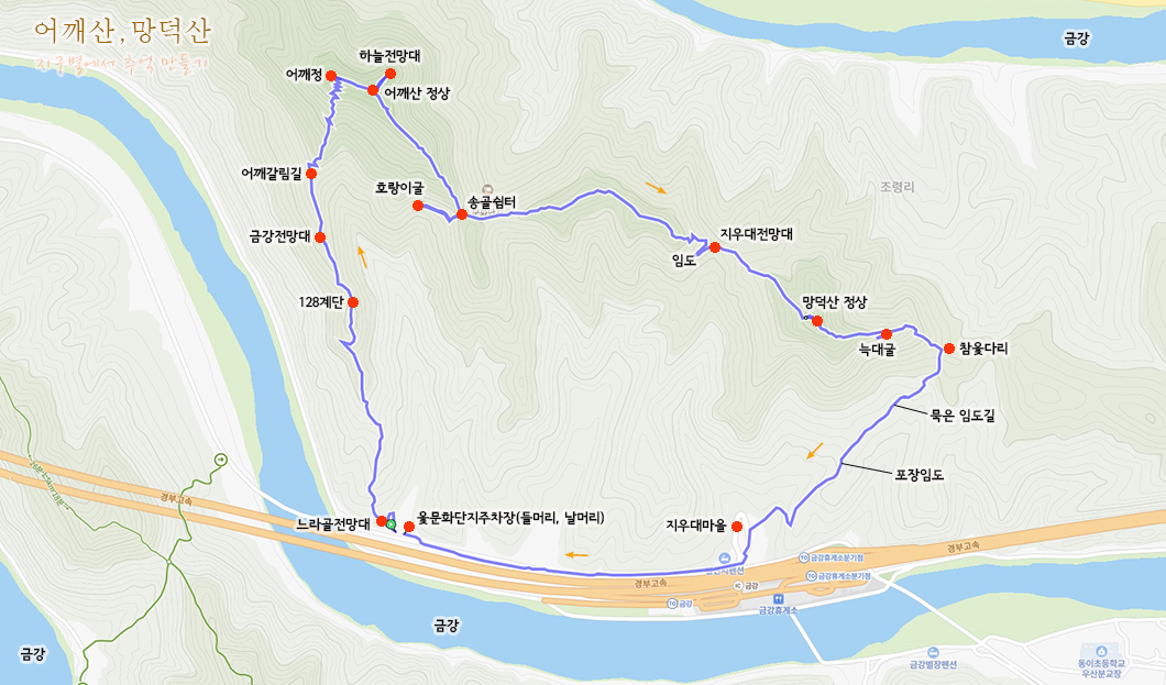 어깨산은 금강 휴게소 뒷산 개념이구요.