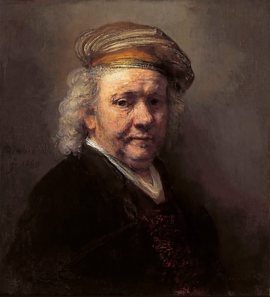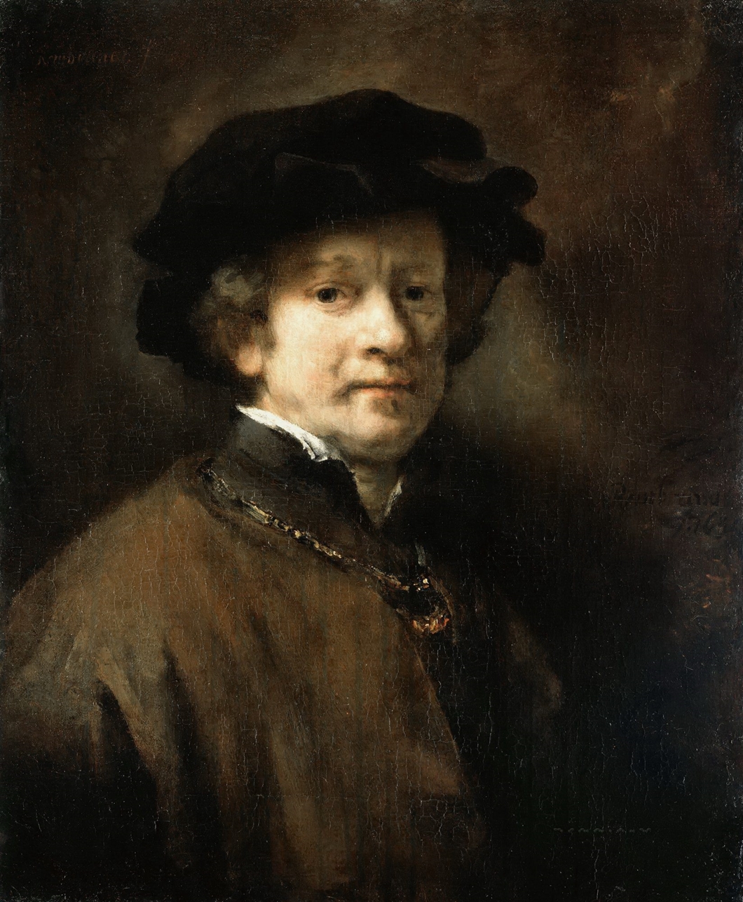 명암법을 적절하게 활용한 화가로서 '빛과 어둠의 마술사'라는 별명이 붙었고 남의 초상화 그린 것 못잖게 본인의 자화상도 무척 많이 그렸는데 대략 100점 이상이 된다고 합니다. 죽은 해인 1669년에도 자화상을 남겼습니다.