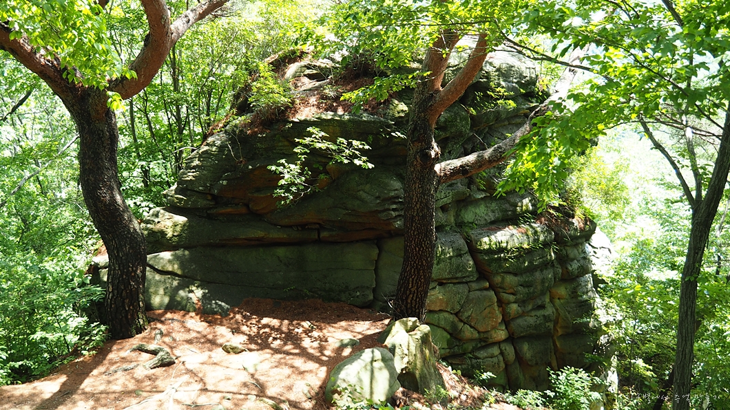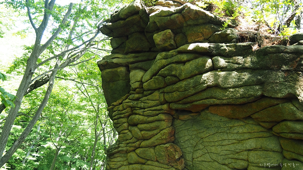 바로 그 옆에는 전체 산길 중에서 가장 명물인 시루떡바위가 있습니다.