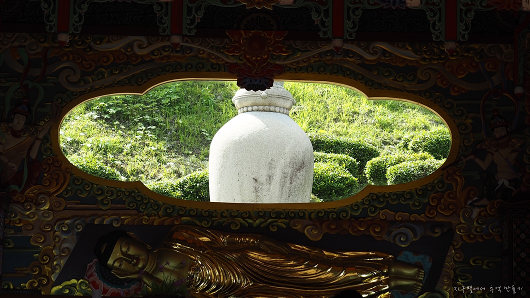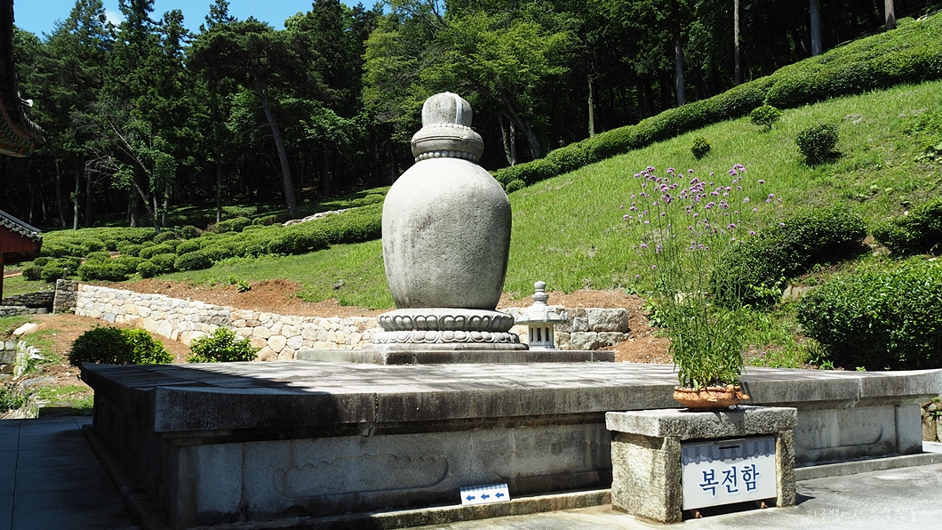 1978년 대웅전의 삼존불상을 개금불사할 때 이곳에 있던 후불탱화 안에서 108개의 사리가 발견되어 그 뒤 대웅전을 업그레이드하여 적멸보궁으로 이름을 바꾸고 뒤편에 사리탑을 건립했답니다.