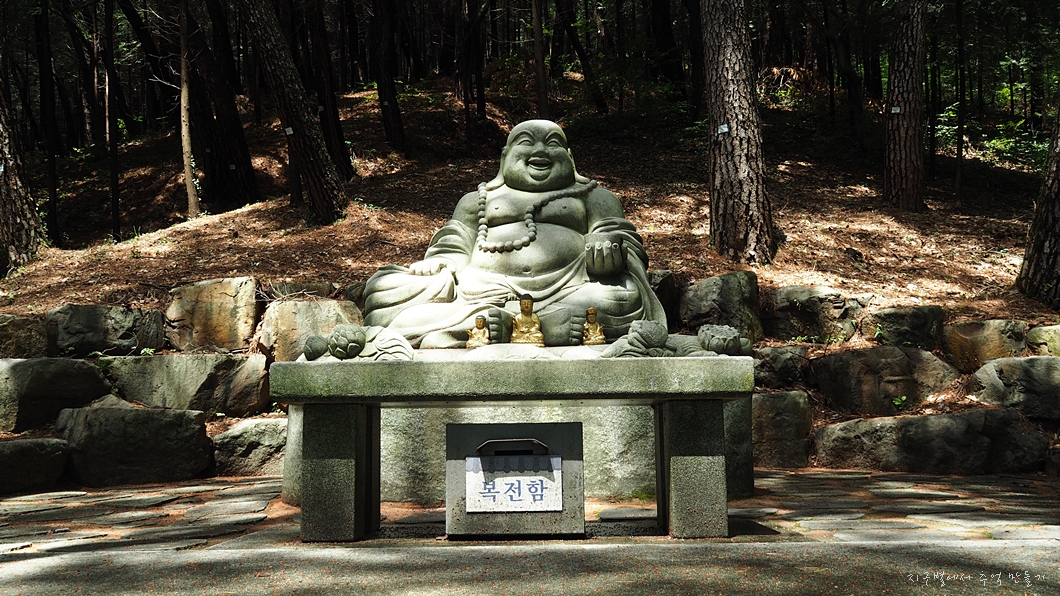 올라가는 산길에 배불뚝이 포대님이 웃으며 반겨주고 있네요.