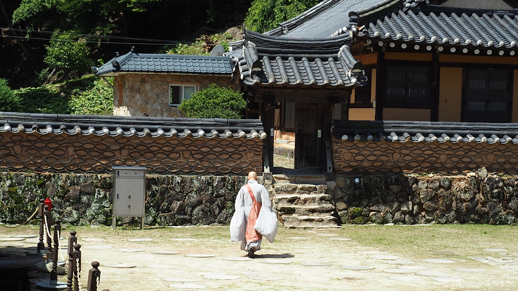 스님이 거처로 걸어가고 있는데 도포자락처럼 휘날리는 저 소매자락은 조금 과하게 제작이 된 듯합니다.
