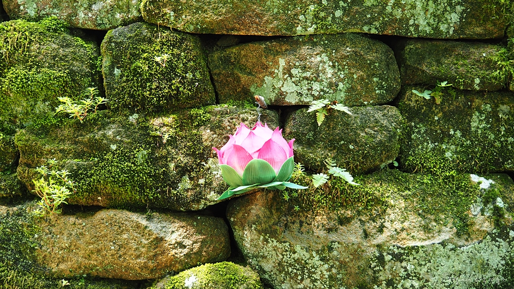 부처님 오신 날을 봉축하는 연등이 돌틈에 끼워져 왜냐고 그 이유를 묻는 듯하네요.