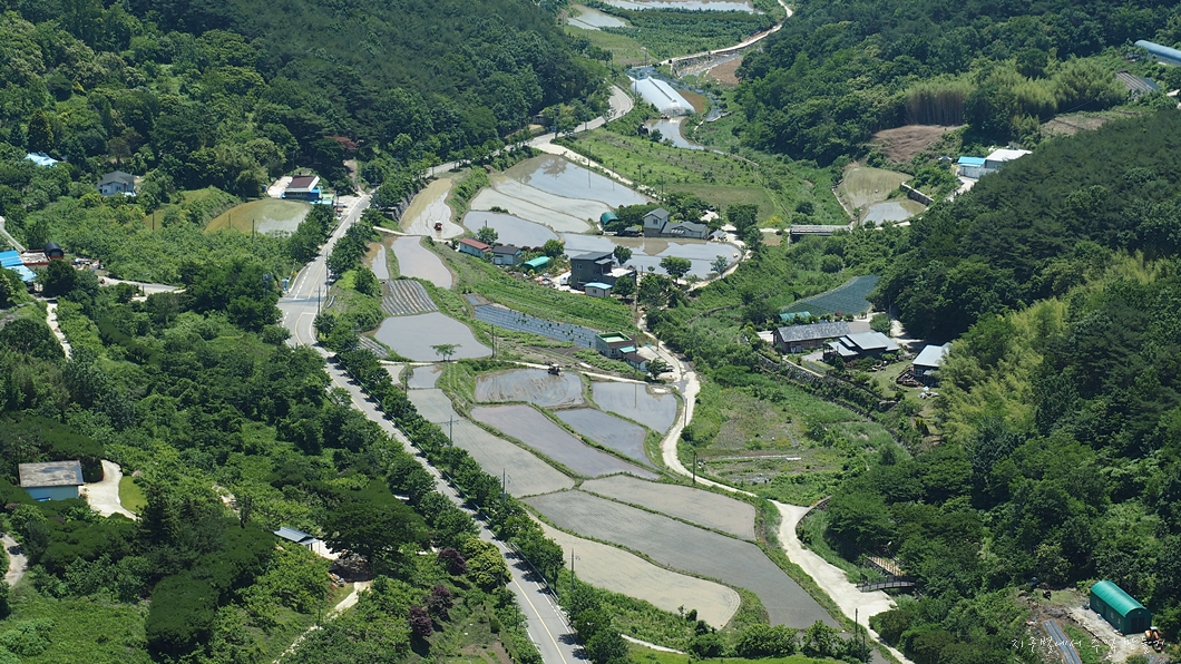 멀리는 바다가 보이고 남해 창선 쪽입니다.