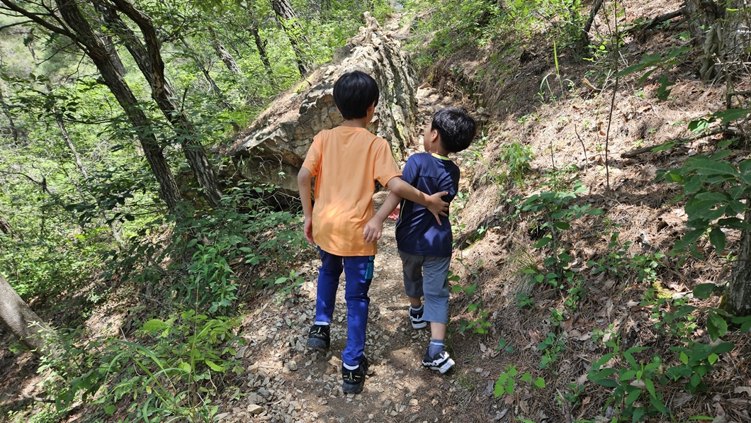 좌측이 산행 동료인 지율 군이고 올해 9세 초등 2학년, 우측은 셋째인 아인. 올해 6세로 유치원 열심히 댕기는 중.