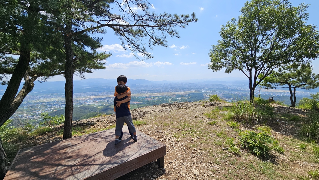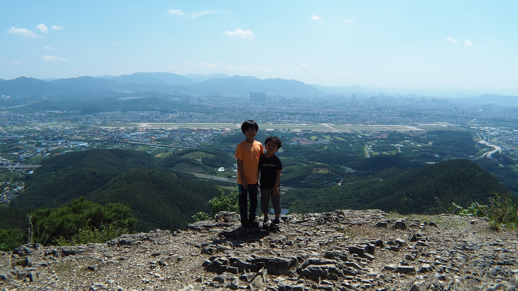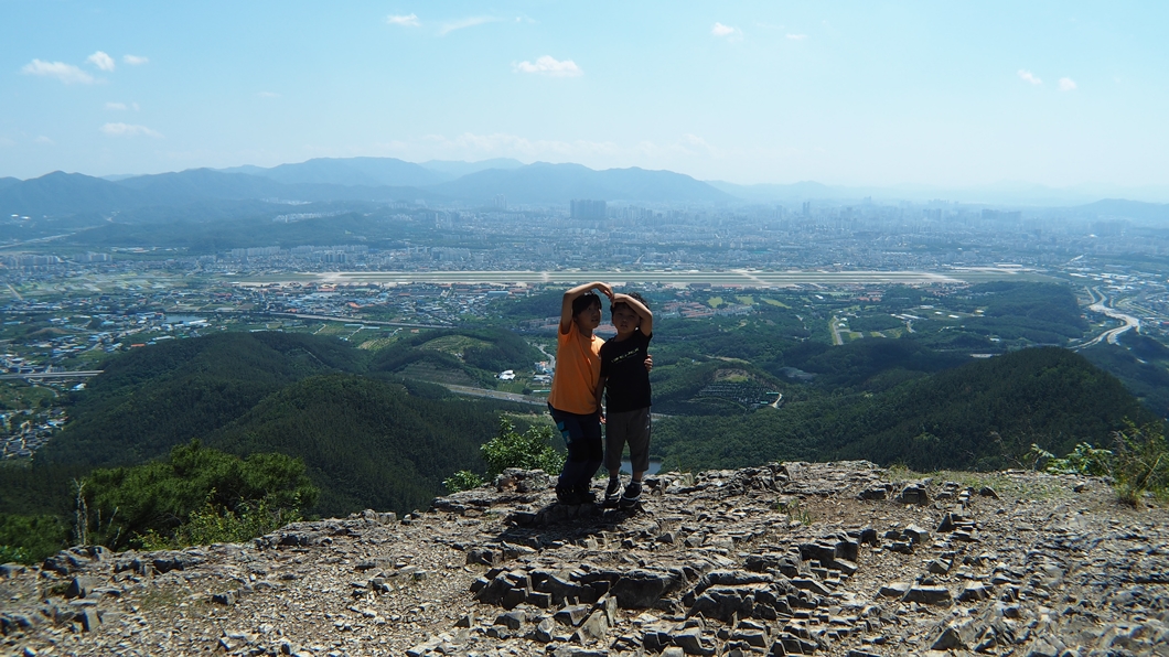 다시 정상으로 올라와서 팔공산을 배경으로.