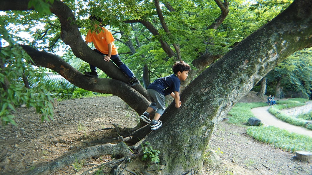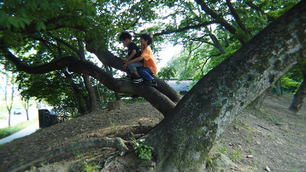 쉼터 데크가 서너 개 놓여 있는데 그곳에서 아이들과 간식 나눠먹고 두넘은 데크 평상에서 레슬링 하는 도중에 카메라 수리를 했답니다.