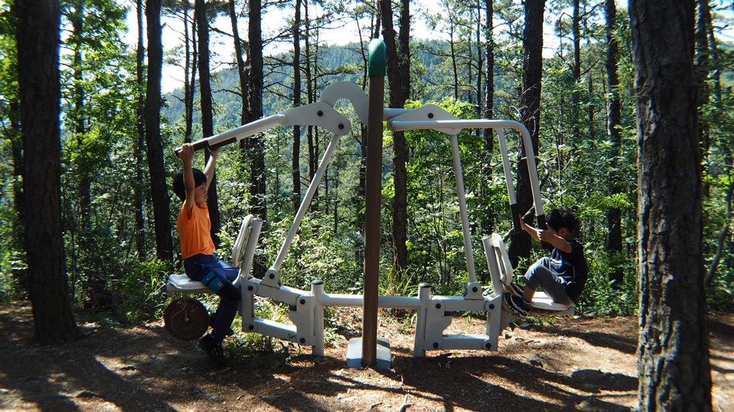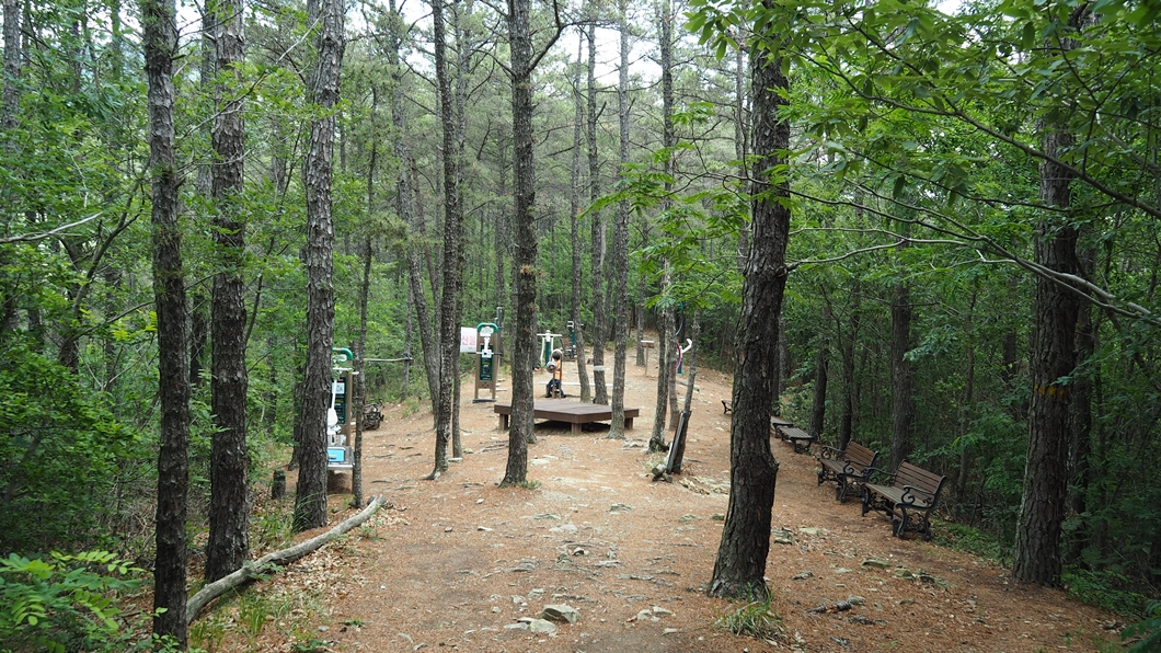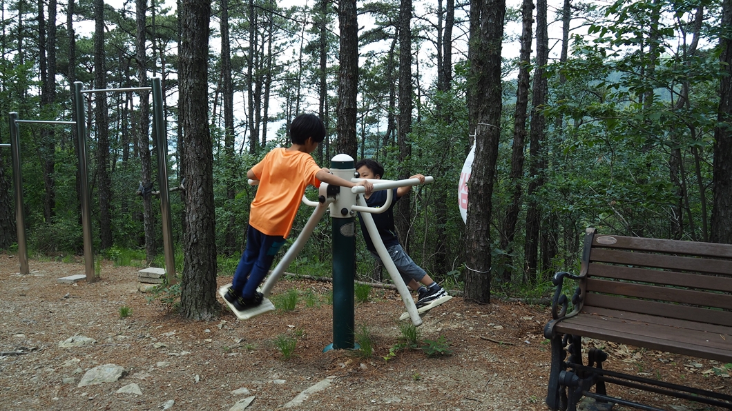 올라갈 때 만났던 체육쉼터를 그냥 지나갈 수 없어...