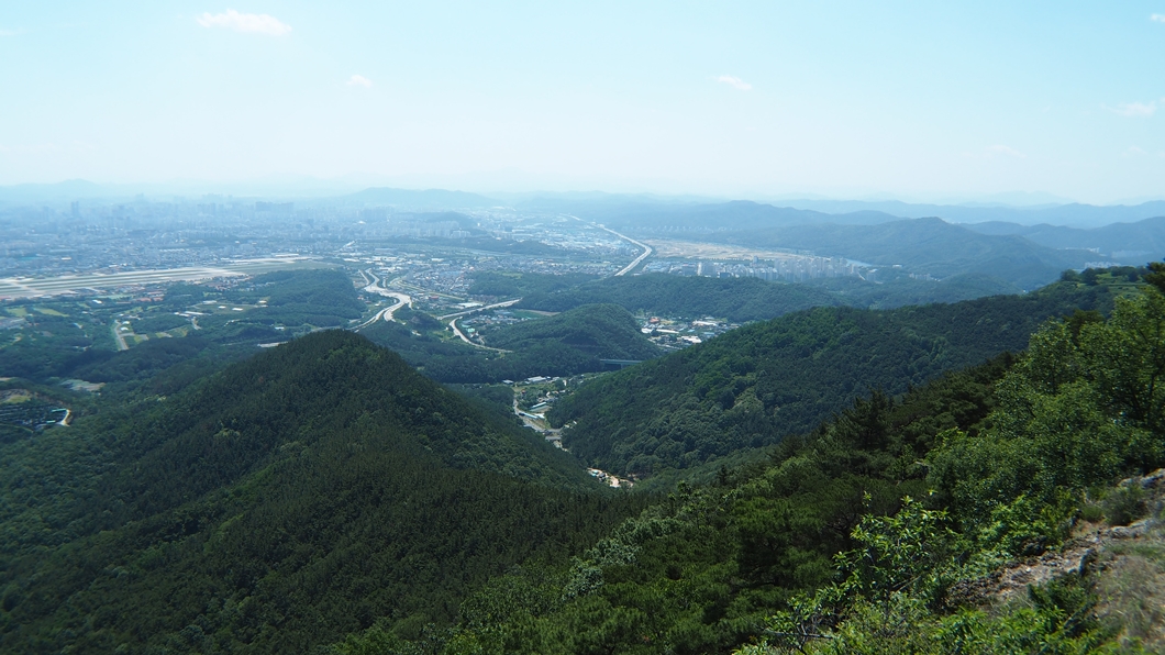 앞에 보이는 잔디밭처럼 생긴 게 대구국제공항.