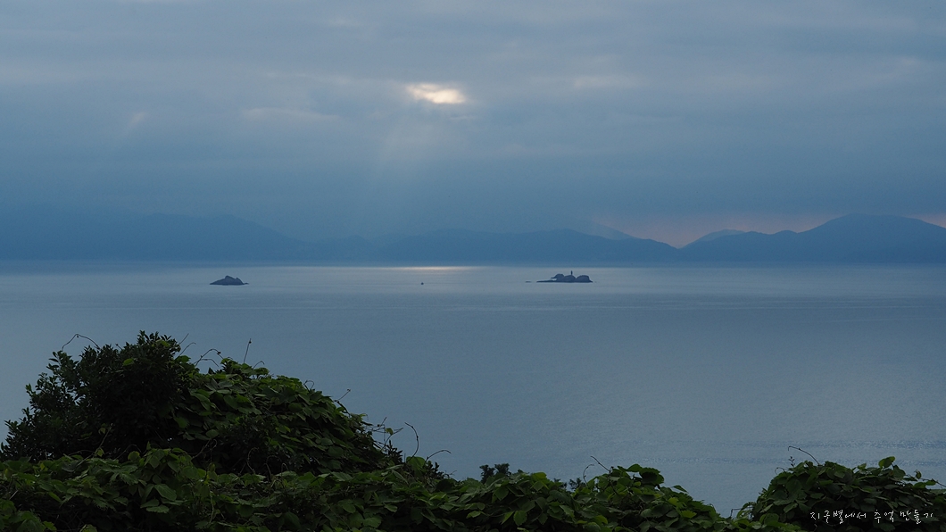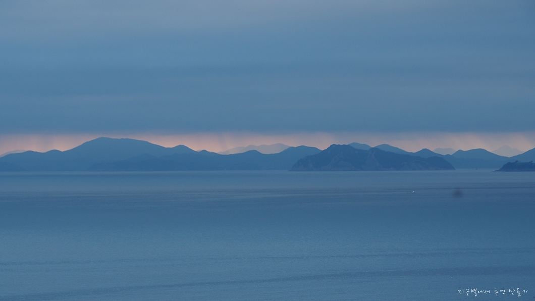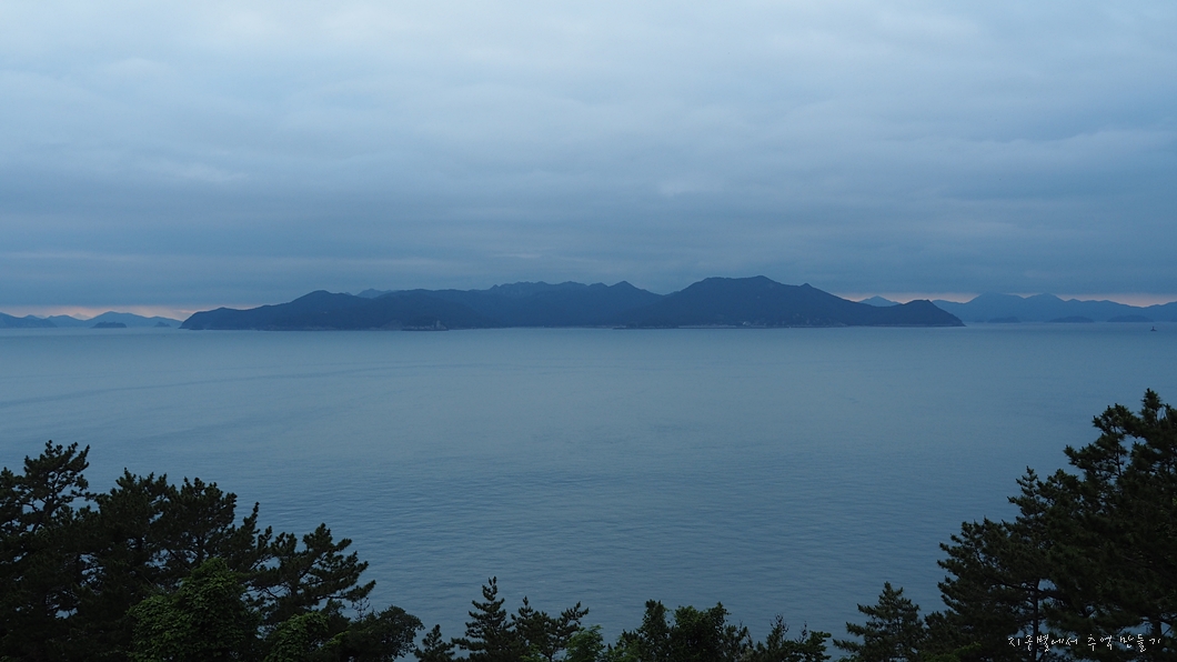 바다 건너 멀리 통영 미륵산이 보이네요.