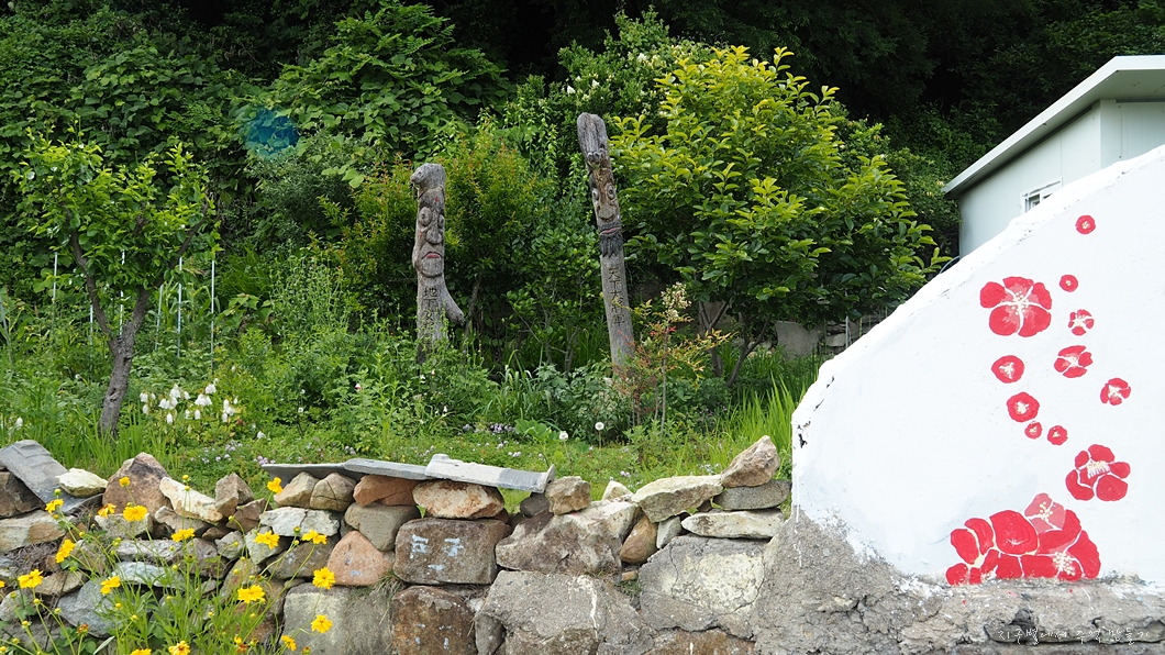 대항마을에 차를 가지고 내려서 바로 이 집 담벼락 앞에다 주차를 하고 섬을 둘러봤습니다.