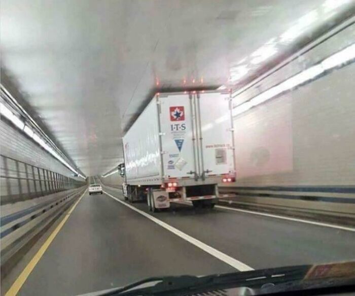 터널을 지나가고 있는 트럭