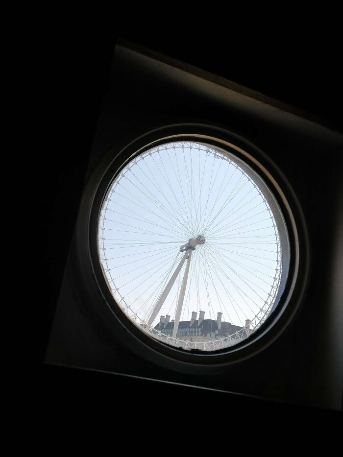 템스강 유람선 창문에서 찍은 런던아이.
