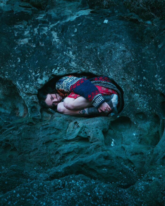 암벽 구멍 속의 여친