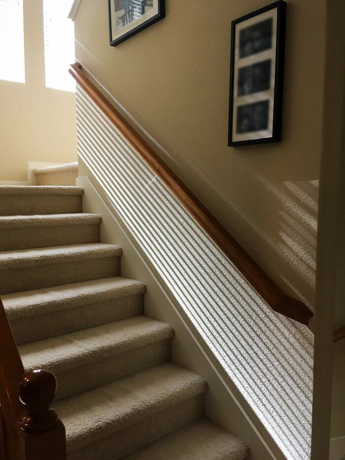 블라인드로 들어오는 햇살이 계단에 멋지게 비춰졌네요.
