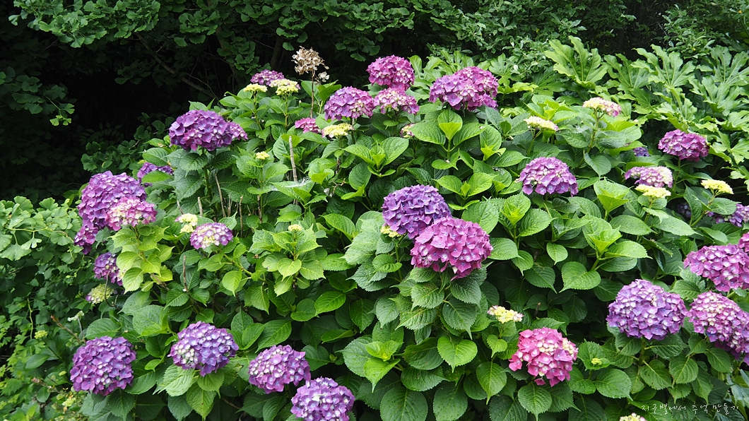 그러고 보니 이곳 추도의 수국은 모두 이 색깔로 핀 것 같습니다.